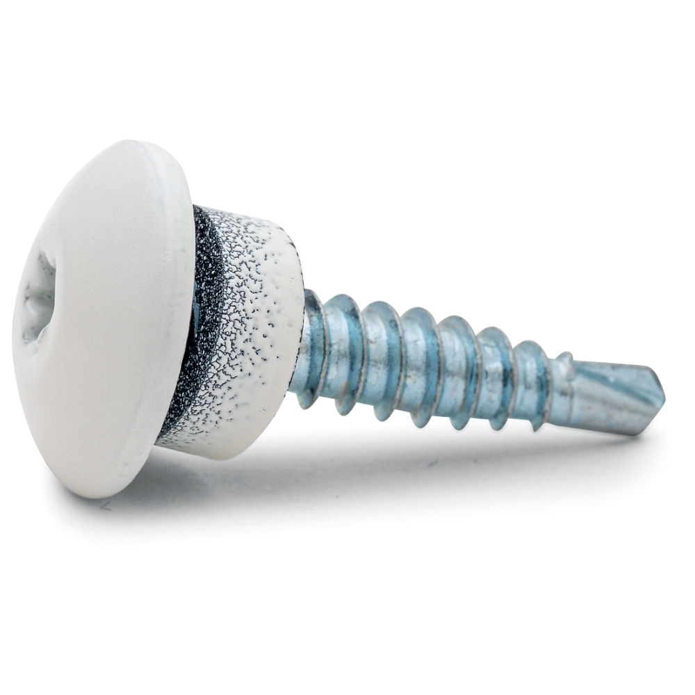 Boreskrue for sammenføyning av metallplater og høye profiler. Utstyrt med EPDM-skive for tetting og bedre trykkfordeling. Lavkarbon hodeskalle med TX-grep.