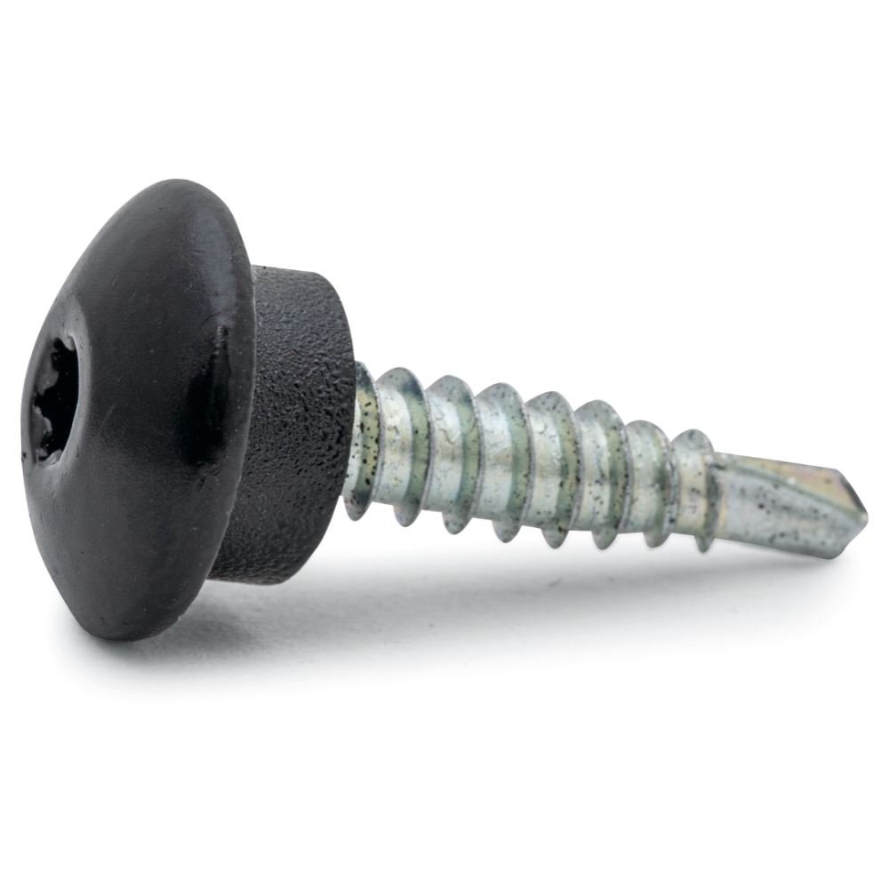 Boreskrue for sammenføyning av metallplater og høye profiler. Utstyrt med EPDM-skive for tetting og bedre trykkfordeling. Lavkarbon hodeskalle med TX-grep.