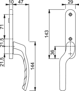 0710VK/350KL BALKONGDØRVRIDER VENSTRE