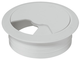 Kabelgjennomføring, 71 eller 91 mm, plast, med roterbart segment i lokket, for arbeidsplassmontering, hvit, borehull Ø: 80 mm.