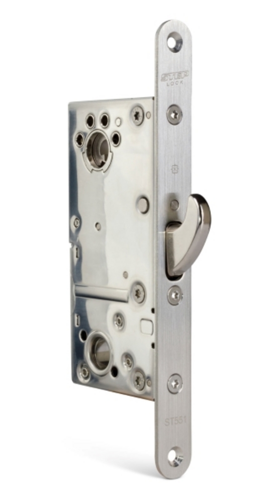 STEP 551 er blant de mest sikre motorlåsene på markedet og kan installeres i dørmiljøer med de høyeste kravene til innbruddssikkerhet. Hakreilen er ekstremt sterk, rask og kan tåle betydelig påkjenning.