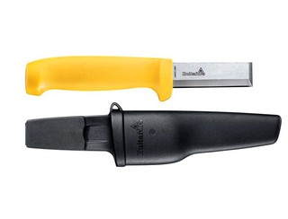 Blad av 3 mm karbonstål herdede til 58-60 HRC. Skaftet og sliren er laget av ekstra slagfast PP-plast.