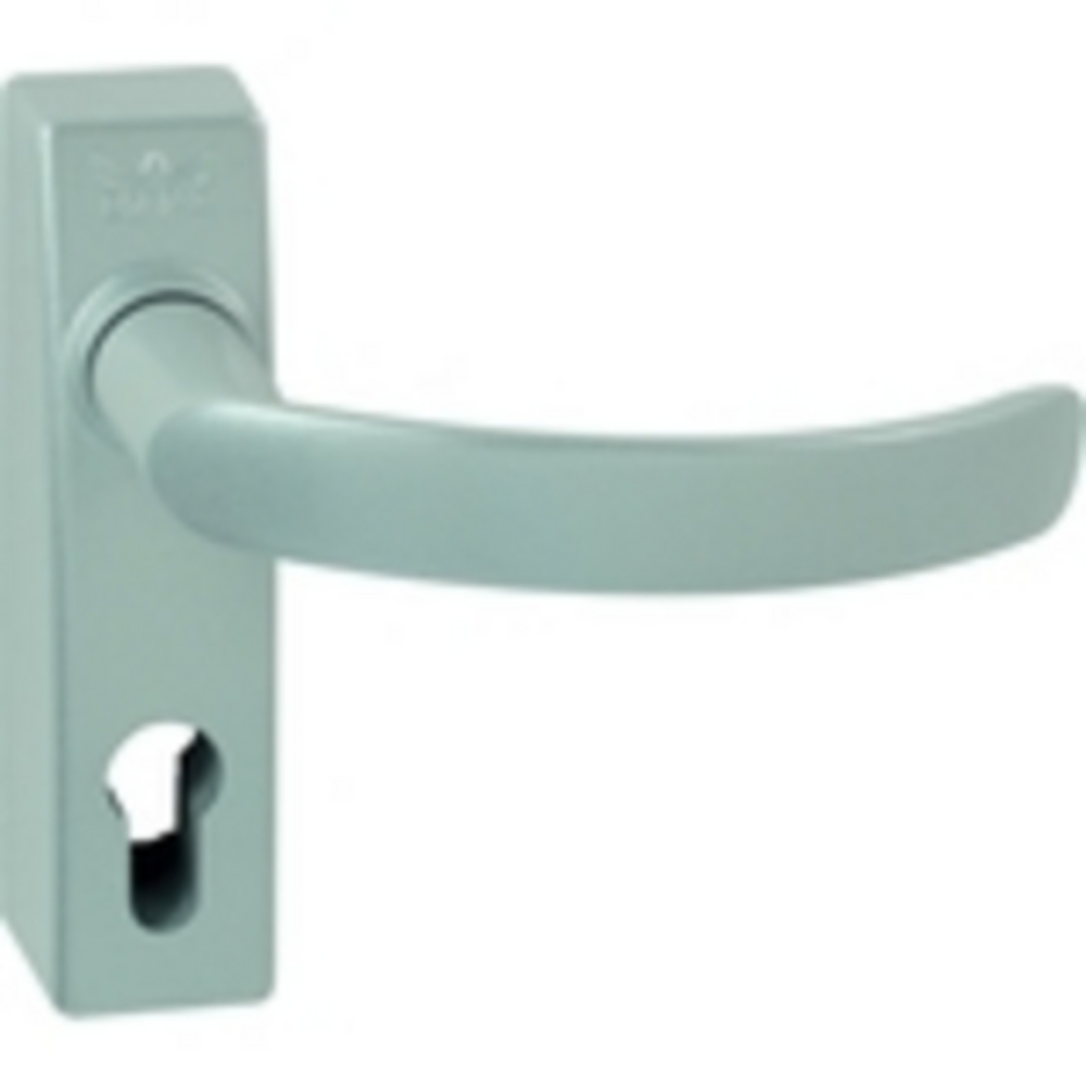 Dørvriderbeslag i PHT serien Contur Design. Benyttes sammen med PHA/PHB/Exit Pad i Contur design for utvendig betjening. Uttak for DIN sylinder, som benyttes for å sette