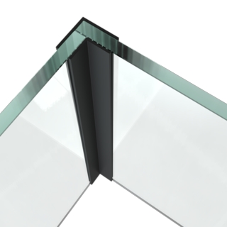 En vinklet standardprofil i naturlig eller svart anodisert aluminium for ytterhjørner i glassvegger.