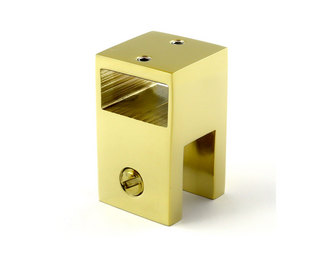 En slank glassklemme for sikker montering av et stabiliseringsrør på dusjvegg. Denne glassklemmen er laget av høykvalitets messing og ferdig behandlet i skinnende gull, og kombinerer både holdbarhet og eleganse.