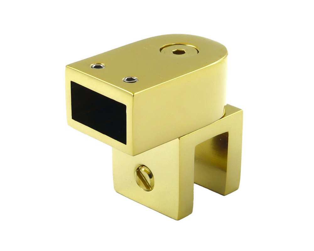 Denne slanke og allsidige glassklemmen tilbyr en 0 360° monteringsevne, noe som sikrer presis plassering av glassrutene i dusjinstallasjonen. Denne braketten er laget av høykvalitets messing og gullfarget overflatebehandling. Dette kombinerer både holdbarhet og eleganse.